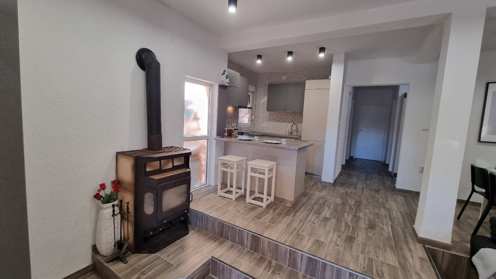 - TV, kuchyň, 2x velká lednice, kávovar, mikrovlnka, myčka, trouba, sporák